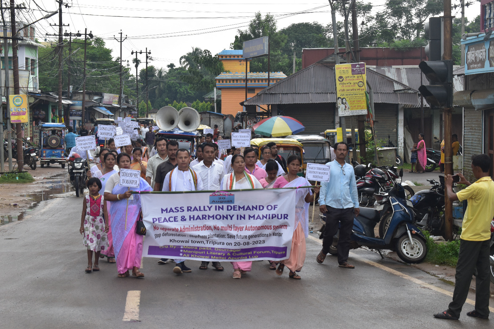 খোয়াই জিলাগী টাউন হোলদসু মণিপুরী লিটরেরী এ্যন্ড কালচারেল ফোরাম, মৈরা পায়বী লুপ অমসুং খোয়াই মণিপুরী অপুন্বা লুপ অহুমনা শীন্দুনা লোলগী নুমিৎ পাঙথোকপগা লোয়ননা মণিপুরদা তংদু লৈতাবা ফীভমদা হঞ্জিল্লক্নবগী শান্তিগী খোঙচৎ অমসু থোকখি। হৌজিক ফাওবা ত্রিপুরাদা মসিনা খ্বাইদগী মশীং য়াম্না শরুক য়াখিবা শান্তিগী খোঙচৎ অমা ওইখি।