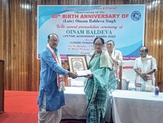 ইম্ফাল, এপ্রিল ১৯ : লেট ওইনা বালদেবগী ৮০ শুবা মপোক কুমওনগী মরী লৈননা ওইনাম বালদেব লাইফটাইম এৱার্দ ২০২৩ মণিপুরী ফিল্মগী শক্নাইরবী ভেটরান আর্টিষ্ট য়েংখোম রোমাদা খুৎশিন্নখ্রে। এৱার্দ অসিদা লেংয়ান, সাইটেসন অমদি শেলগী মনাসু য়াওরি। ওইনাম বালদেব মেমোরিয়েল ট্রাষ্ট, কৈশামথোং এলাংবম লৈকাইনা শীন্দুনা থাঙ্গাল বাজারদা রৈবা হোটেল নির্মলাদা পাঙথোকখিবা থৌরম অদুদা লাইওইখ্রবা ওইনাম বালদেবগী ফোটোদা মীয়াম্না লৈ কৎতুনা অমদি মিনিট অনি তুমিন্না লেপ্তুনা ইকায়খুম্নবা উৎখি।