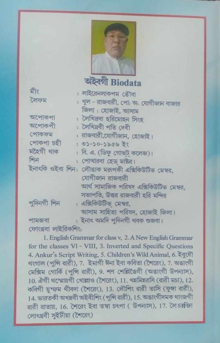 ঙসিগি থৌরম অদুদা মণিপুরী সাহিত্য পরিষদ, বিষ্ণুপুর মশাগী প্রসিদেন্ট ডো. হাওজম রোশো মৈতৈনা চীফ গেষ্ট, আর কে মিশনগী চিফ ফঙ্কশনারি ডো. রাজকুমার গুনচন্দ্রনা প্রসিদেন্ট অমসুং কসম লাইফ ষ্টাইলগী অবুজম মোহেন্না গেষ্ট ওফ ওনর ওইখি। লাইরেনলাকপম ঙৌবনা মৈতৈনা ইবা মণিপুরী অমসুং অসামী লোন্দা পুন্না লাইরিক ১৬ রোম ফোঙখ্রে হায়রি।