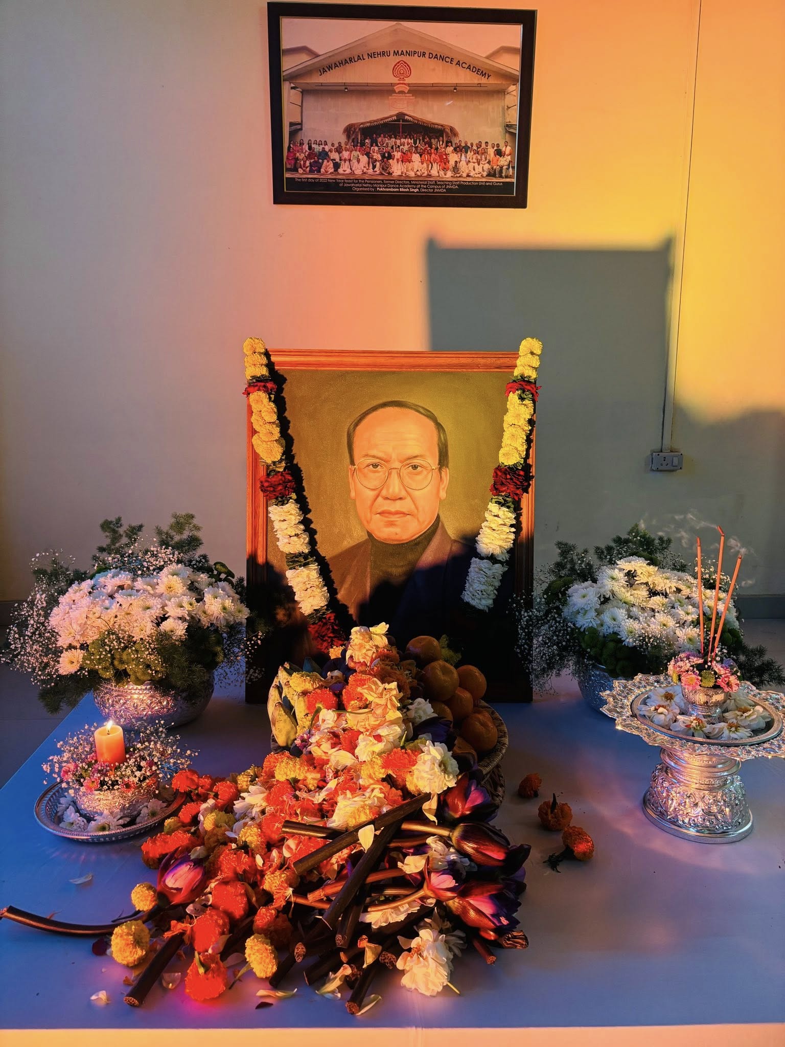 [ floral tribute to the portrait of the late Khundongbam Brojendro ]